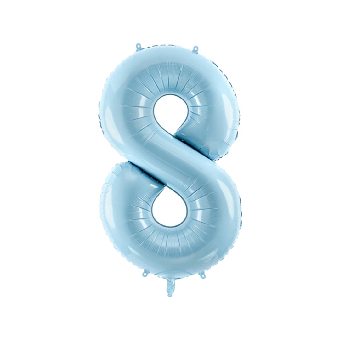Baloane Folie Albastru Pastel, Cifra 8 - 86 cm