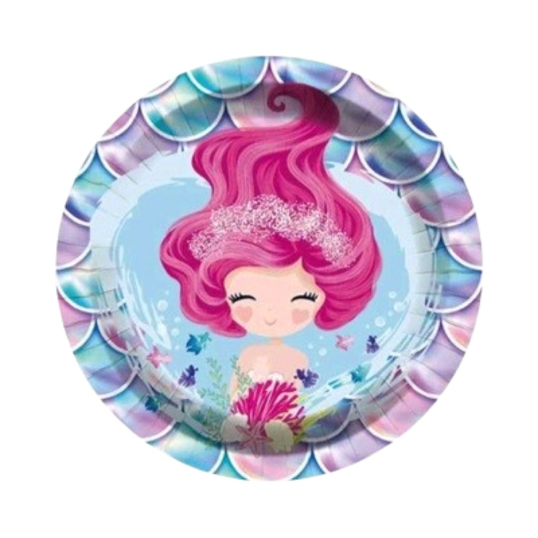 Set 8 buc Farfurii Carton Sirenă, Diametru 18 cm